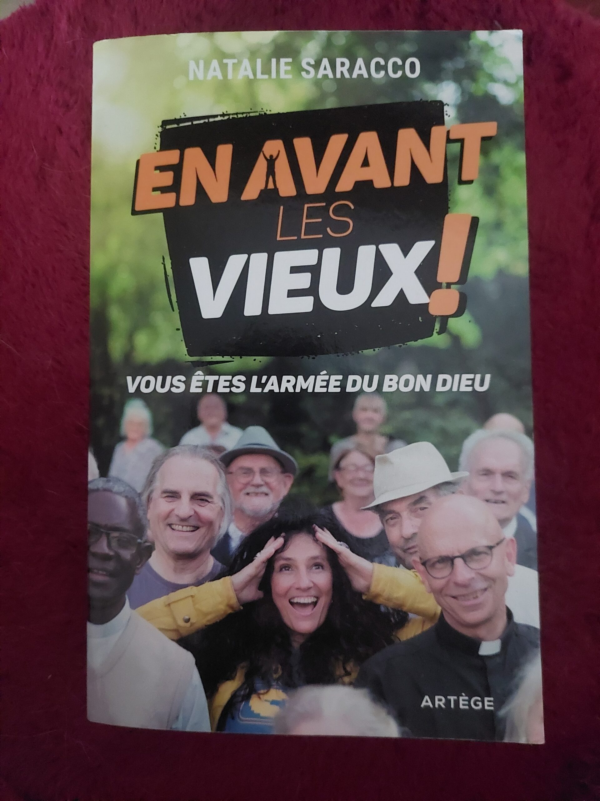 Natalie Saracco n’a de cesse de raconter sa foi : dans des films, des livres et aussi au moyen de conférences sur sa rencontre avec Jésus Christ. Elle identifie dans « En avant les vieux ! » les mille et un écueils qui peuvent surgir la vieillesse venue, en y distillant également des passages des évangiles selon les apôtres. Toutes ces histoires sont relatées avec humour, sur un ton léger, mais tout aussi sérieux. Elle porte un regard lucide et d’une infinie tendresse sur ces personnages, elle ouvre nos cœurs et nos yeux sur cette dernière étape de la vie.